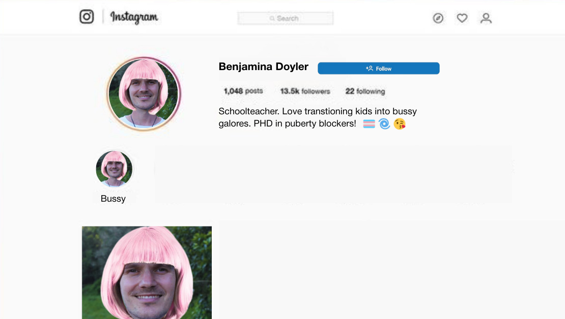 “Kia ora fellow-bussy school teachers!” said Doyle via his new Instagram persona. “Man, I love teaching kids about bussy galore and supporting them with their transitions. Oh… I just received my PHD in puberty blockers!”