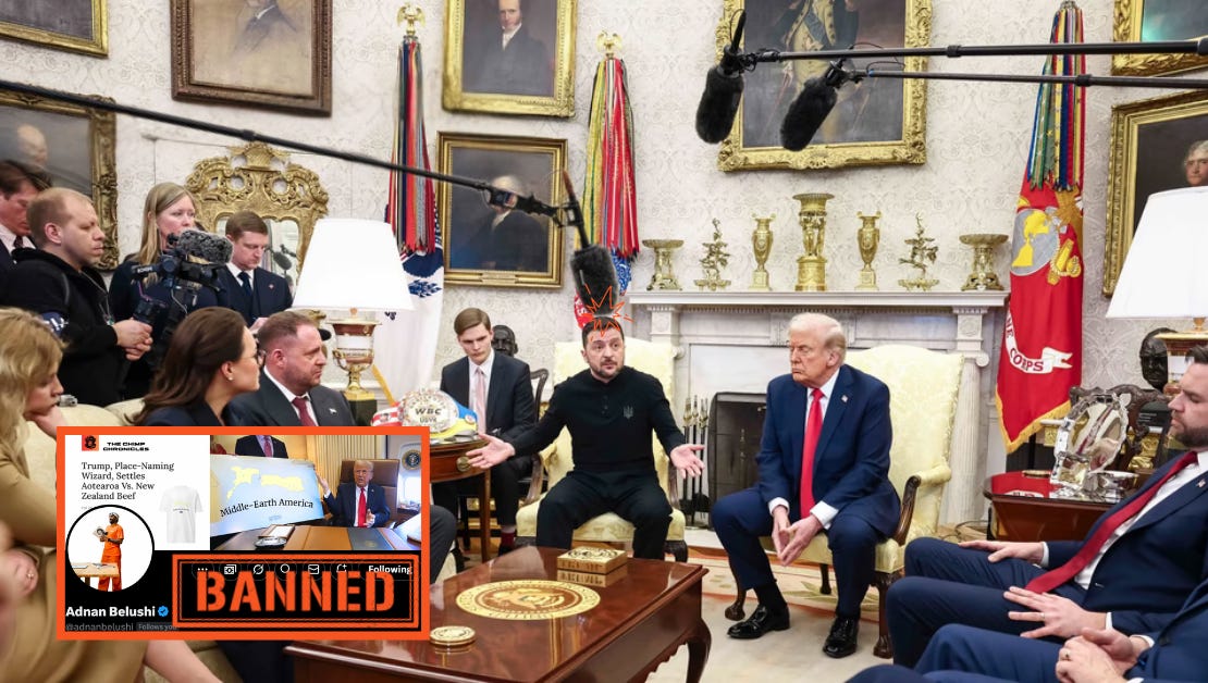The Chief Editor of The Chimp Chronicles, Adnan Belushi, found himself unexpectedly thrown in Twitter jail, for simply cracking a satire joke about Zelensky’s visit at the Oval Office, which resulted in him being thrown out of the White House, for being ungrateful.