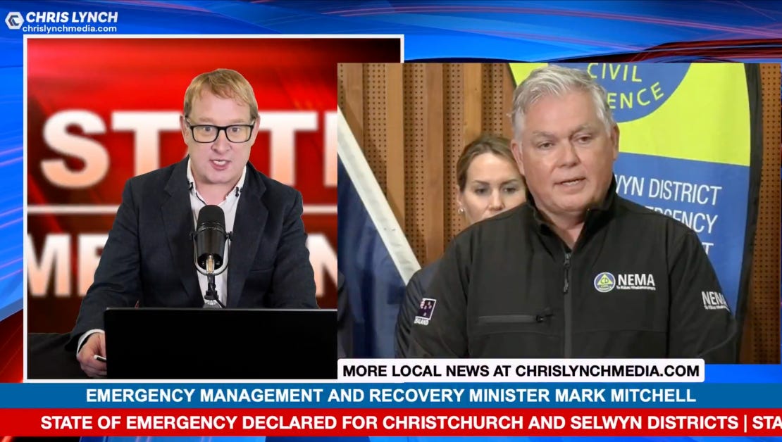 At publishing time, Christchurch remained under a state of emergency, with Mitchell spotted inspecting a particularly menacing puddle on New Brighton Road.