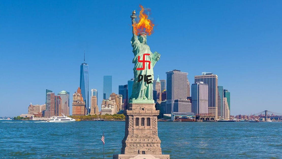 Democrats Spray-Paint Swastikas On Statue Of Liberty