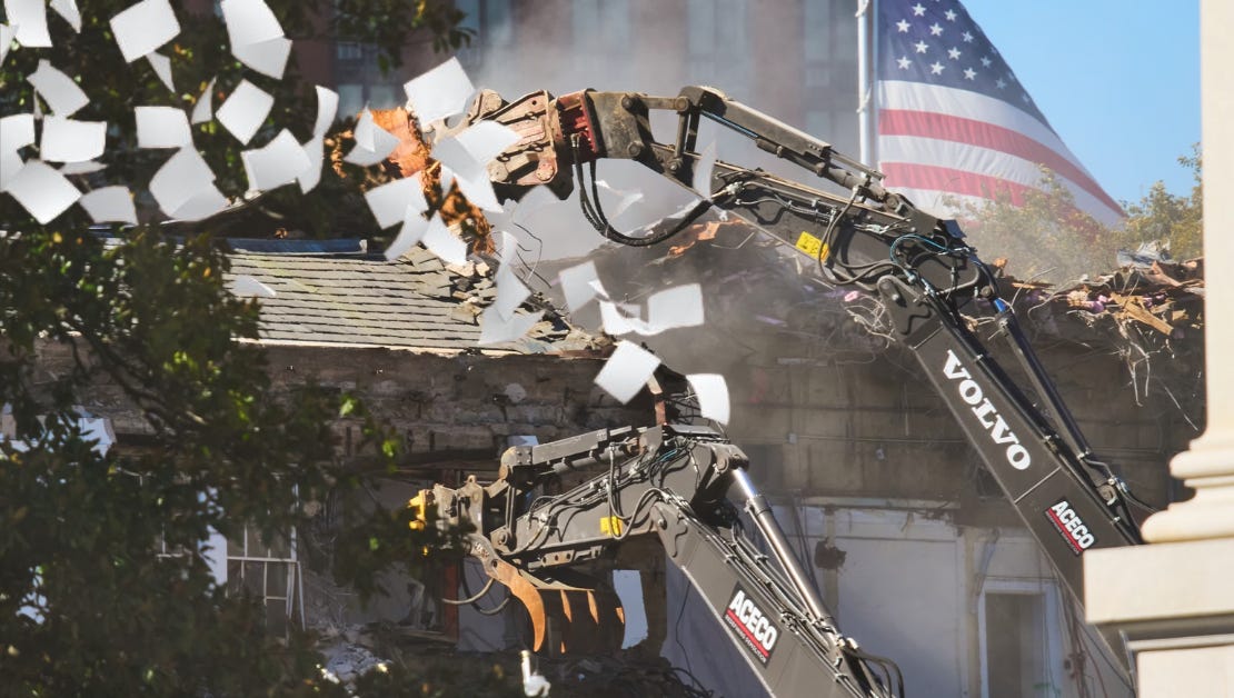 Epstein Files Seen Flying Out Of The East Wing As Demolition Continued