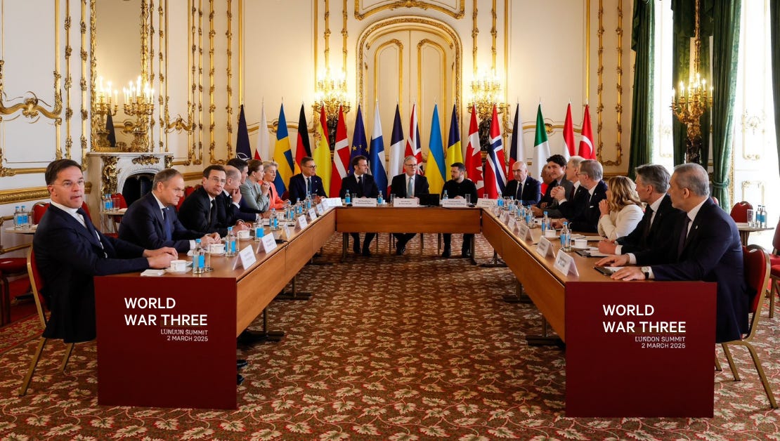 The summit, WORLD WAR THREE, spearheaded by UK Prime Minister Keir Starmer, French President Emmanuel Macron, and a noticeably twitchy Zelensky, kicked off this morning at a heavily guarded Westminster Hall.