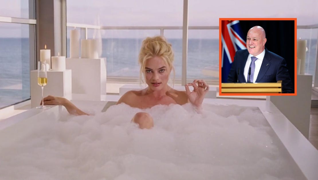 Here's Margot Robbie In A Bubble Bath To Explain How Luxon Is Funneling Taxpayer Money Into Blackrock And Vanguard So After He Quits Politics He'll Be Worth $30 Million Dollars Like Jacinda