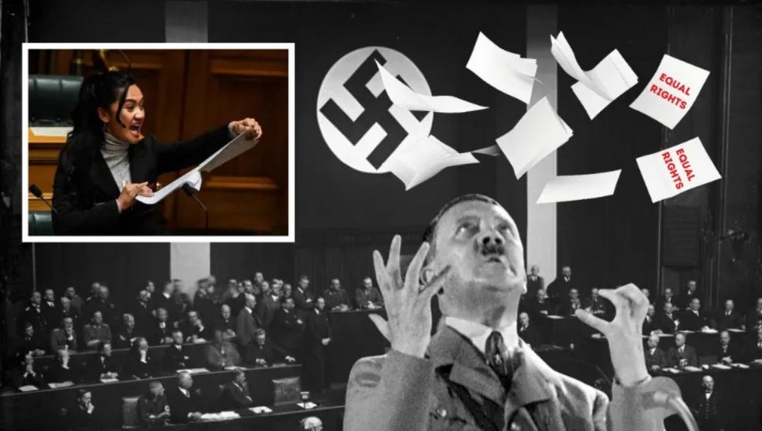 NZ — After the infamous incident at New Zealand parliament involving a member ripping up a bill on equal rights, video has surfaced of Hitler tearing up the peace agreement from the Western Allies.