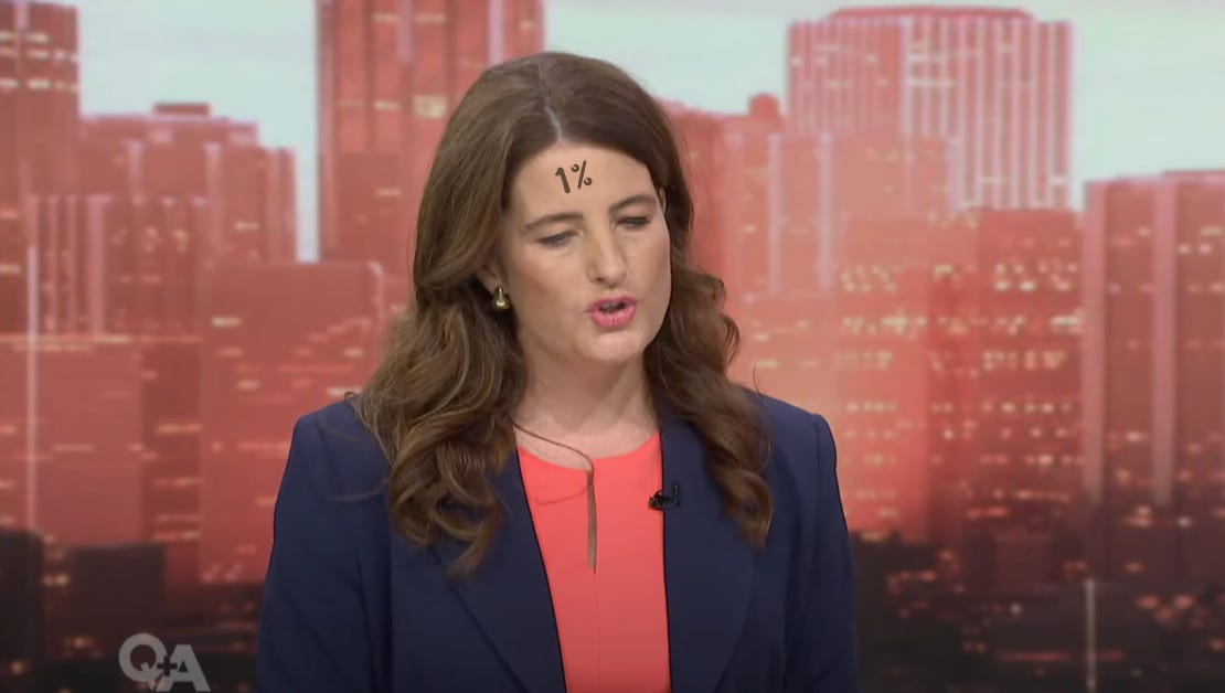 On Sunday’s Q&A with Jack Tame, New Zealand Finance Minister Nicola Willis stunned viewers by revealing a “1%” tattoo on her forehead, symbolising her dedication to the country’s projected 1% annual economic growth over the next five years.