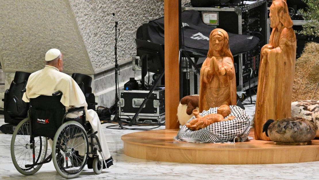 VATICAN CITY — Pope Francis suggested to Syrian Christians that perhaps, just maybe, they should consider giving Christmas a miss this year. He unveiled this survival tip under a rather unconventional Christmas tableau, featuring a statue of baby Jesus donning a keffiyeh, the traditional Palestinian scarf, showing his support for HAMAS.