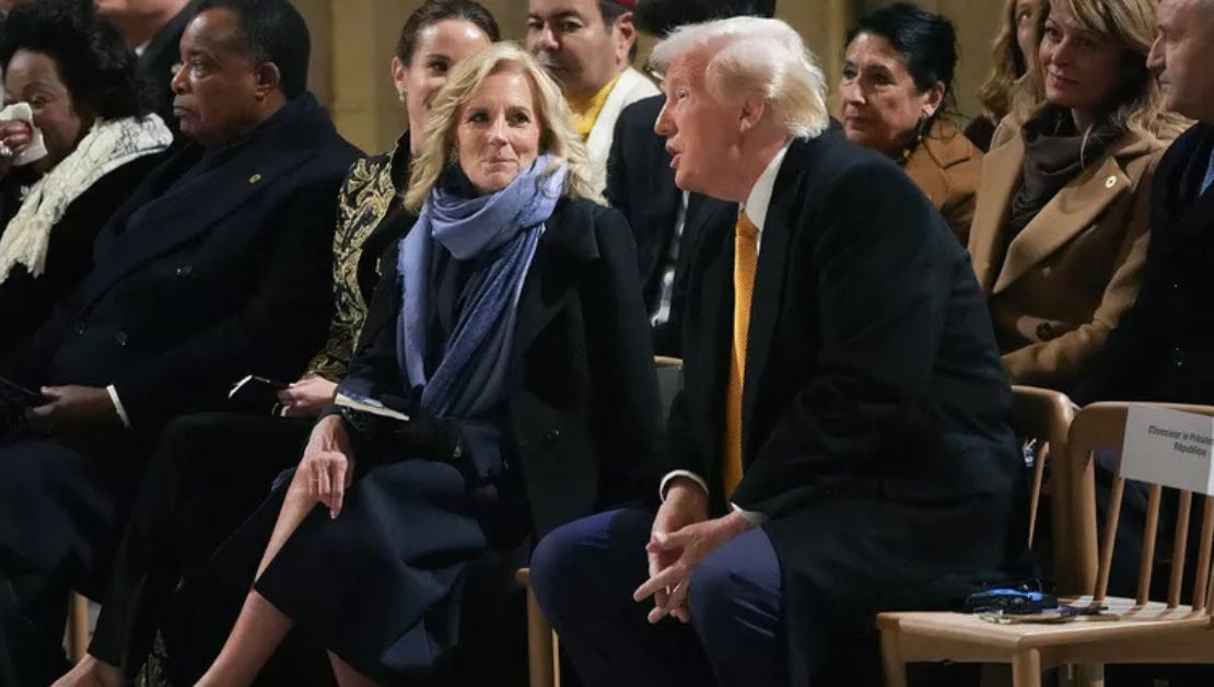 PARIS, FR — President Jill Biden graced the reopening of Notre Dame Cathedral with her presence, leaving everyone to wonder, "When did we get our first female President?"