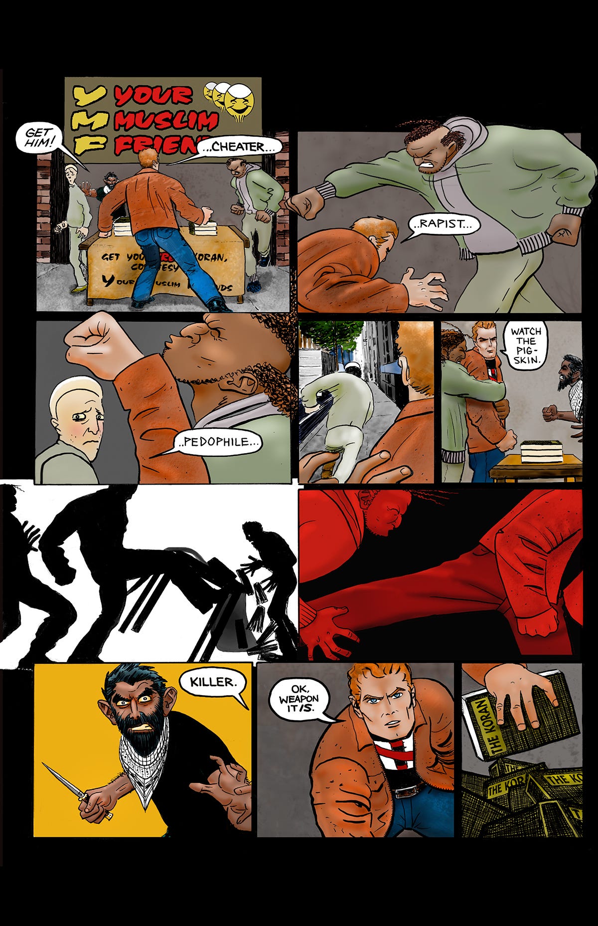 At publishing time, PIGMAN was seen smacking Jihadists on the street with a Quran.