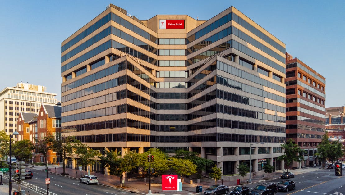 Trump Installs Tesla Signs Outside EAC Building So Democrats Burn It Down