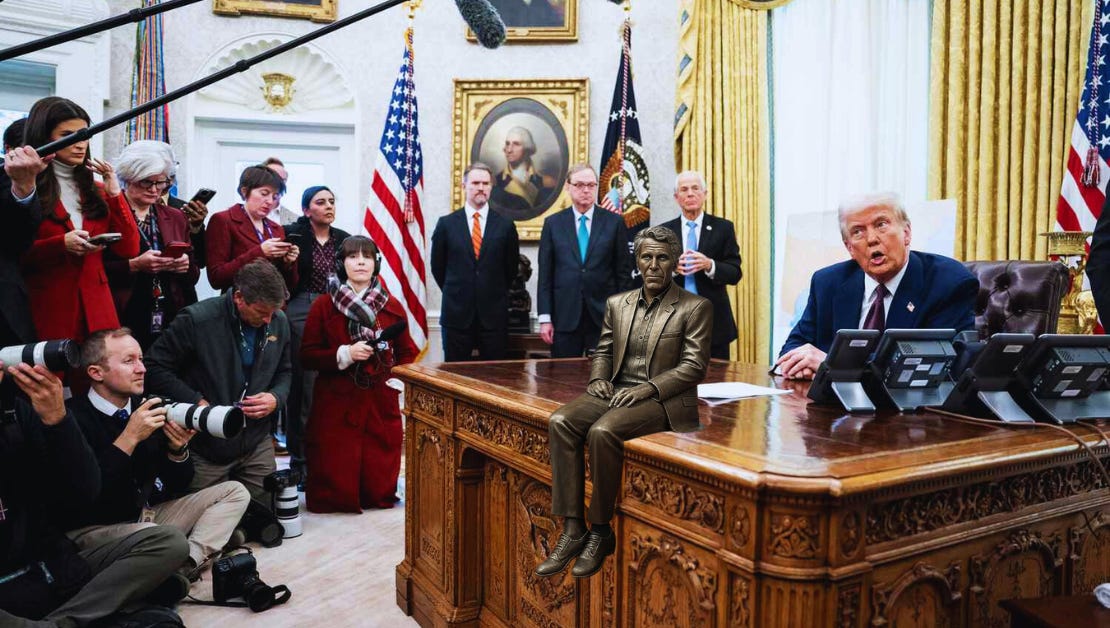 WASHINGTON, D.C. — President Trump unveiled a bronze statue of Jeffrey Epstein in the Oval Office today, a gift from Attorney General Pam Bondi.