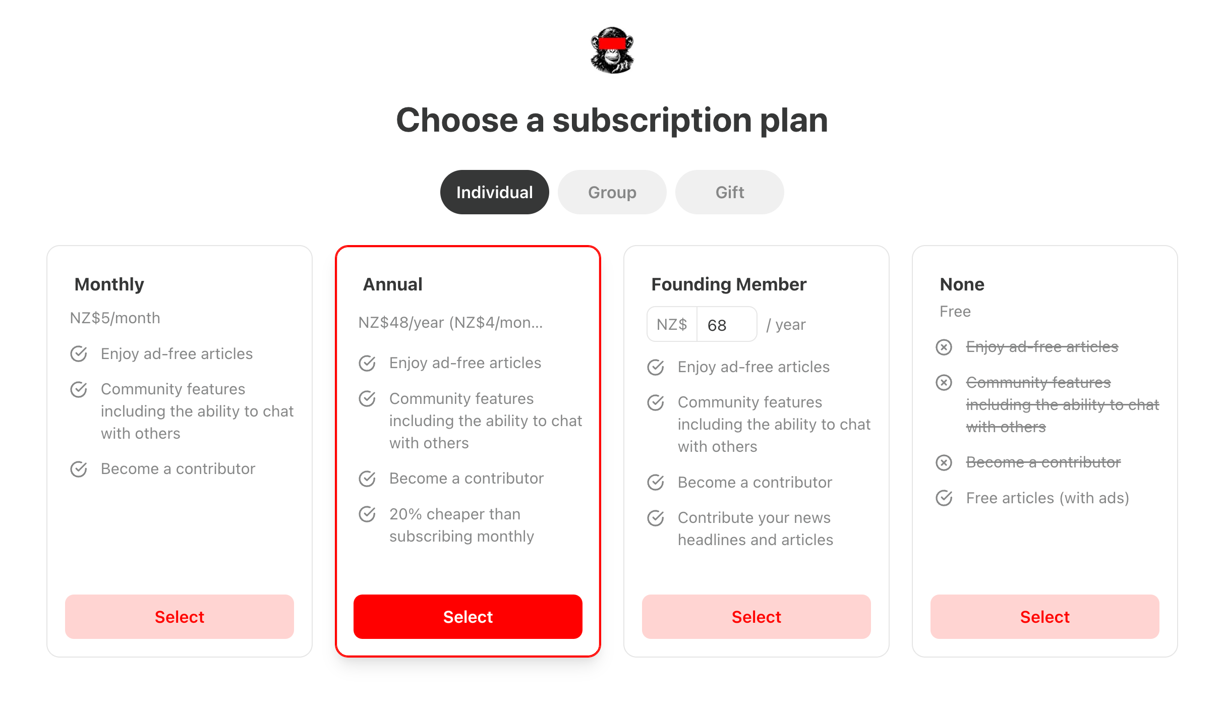 Subscribe to Not the Chimp for NZD $5 per month. Also enjoy 20% discount for an annual subscription