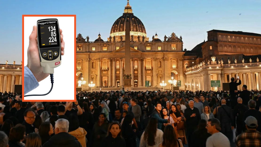 VATICAN CITY — As the Vatican mourns Pope Francis, officials have installed Faggot-O-Meters in St. Peter’s Basilica to monitor “faggotry levels” during his funeral, ensuring spiritual purity for the solemn occasion.